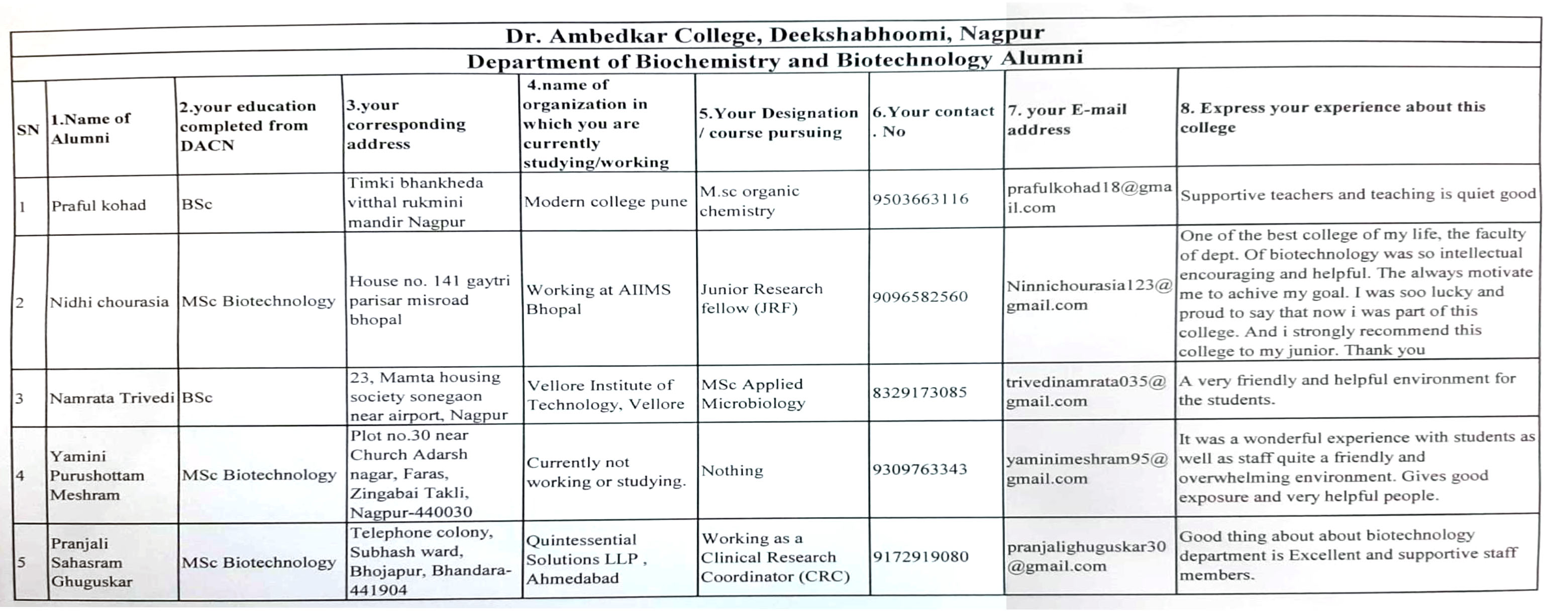 | 55 | Mr H. Khobragade | Doing Ph.D. at RTM Nagpur University, Nagpur | Botany |